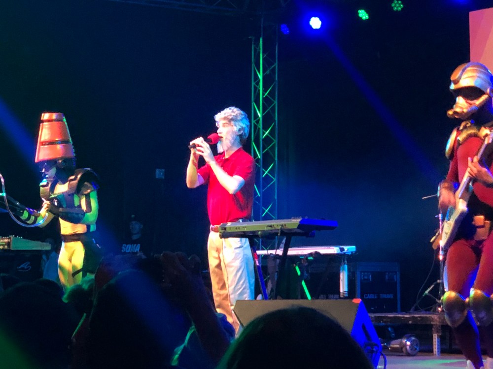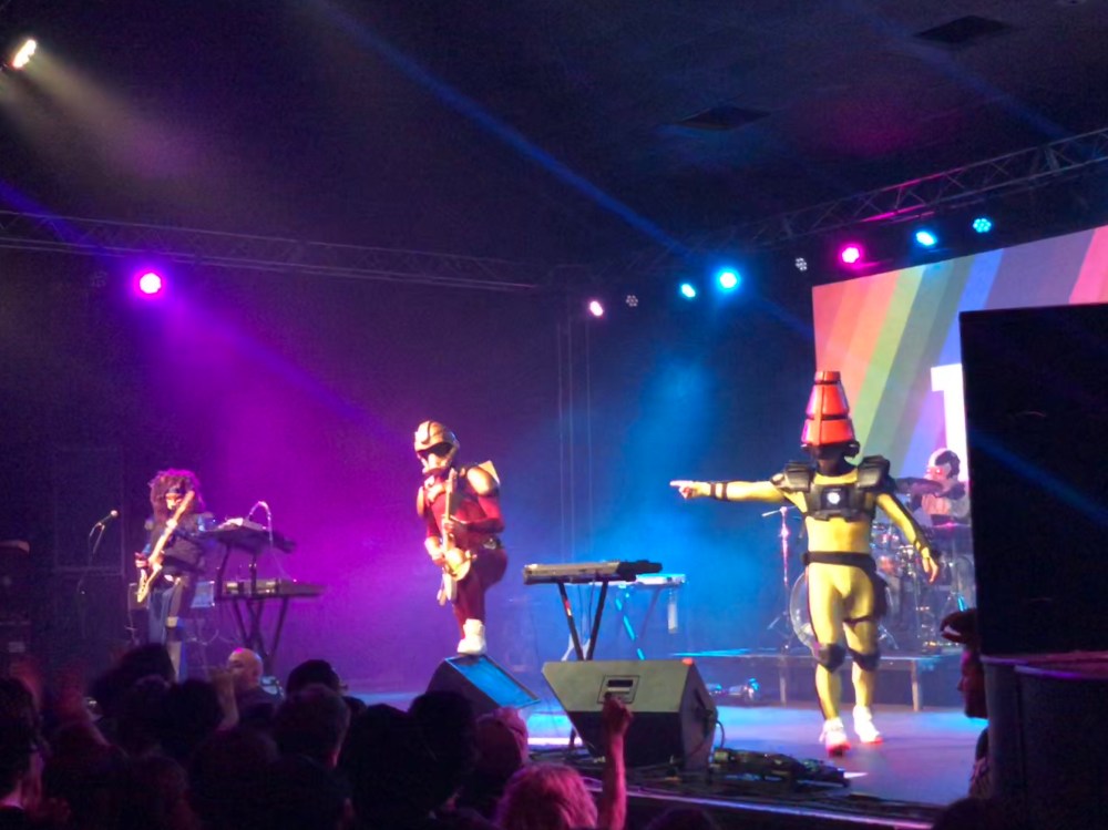 TWRP is a Canadian band from the 80’s from the far future from space. They open the show with enthusiasm and third song in we already have audience participation. The crowd cheers on and off as the lead keyboardist goes from tossing nunchucks to gyrating his hips seductively so he can turn on your sexual desires. The slow funky beats makes the kids standing in front of me swoon on each other a little harder. The sexual tension they have for each other is palatable. Proud of them 😏 teens are funny. “These are sexier times” – Edgar Allen Poe.